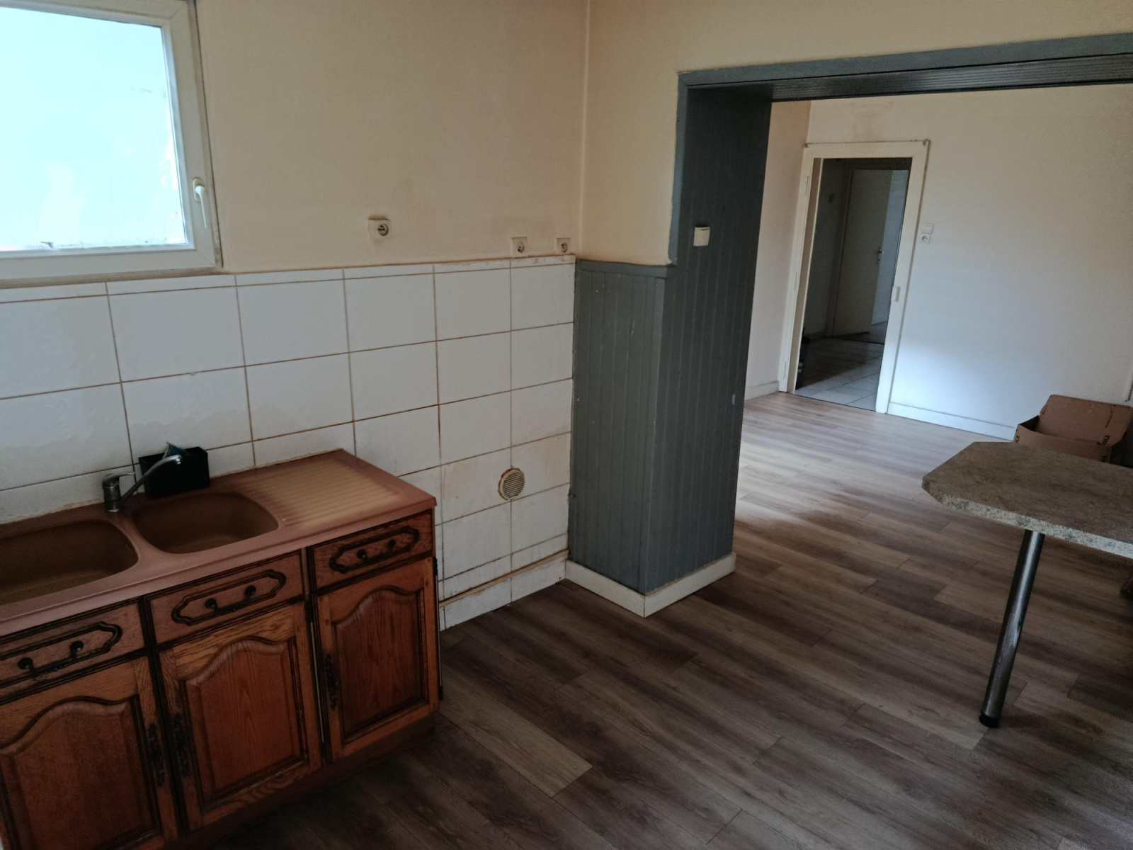 Appartement en RDC dans un petit immeuble de 3 logements. 65m²habitavles avec séjour-cuisine,salle d'eau, wc individuel, 2 chambres et un grand dressing. Accès à une terrasse. Double vitrage.