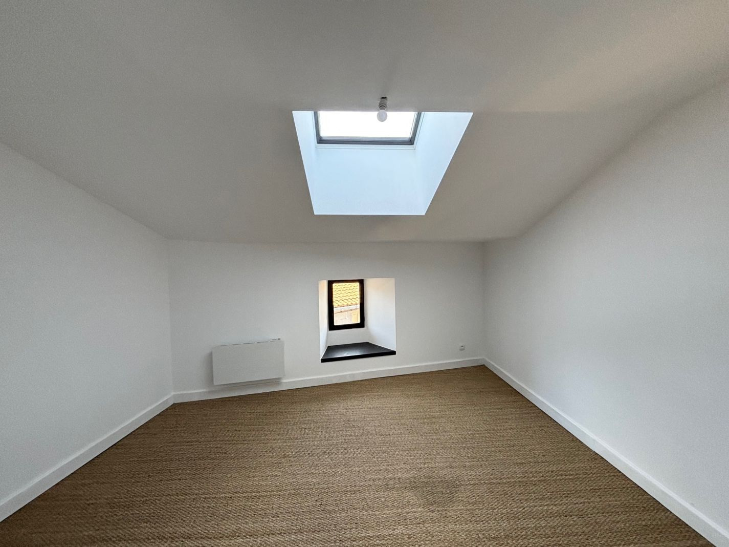 A l'étage de l'appartement, 2 belles chambres lumineuses avec vélux, sol en jonc de mer et un WC séparé. Avec ce lot est vendu une joli cave voûtée. Chauffage électrique neuf, fenêtres bois DV et toiture bon état. Electricité neuf.